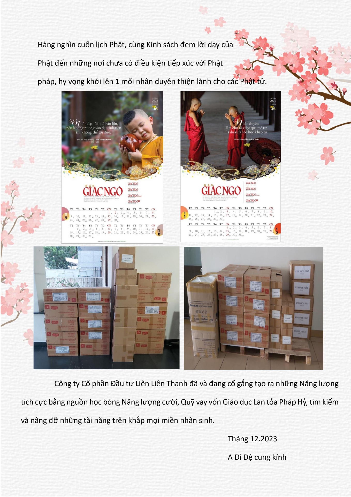 Thiện Nhân A Di Đệ cung kính dâng tặng Hiệu trưởng và Thầy Cô dạy Văn, Đạo Đức Trường cấp 1,2,3 giáp biên giới Lào, Campuchia và Trung Quốc.14:55 - 22/12/2023Lĩnh vực hoạt động, Danh sách các trường cấp 1,2,3 giáp biên giới Lào, Campuchia và Trung Quốc nhận kinh sách được đính kèm bên dưới. Tải xuống campuchia.xlsx Tải xuống danh-sach-truong-giap-lao.xlsx Tải xuống trung-quOc.xlsxChia sẻ: